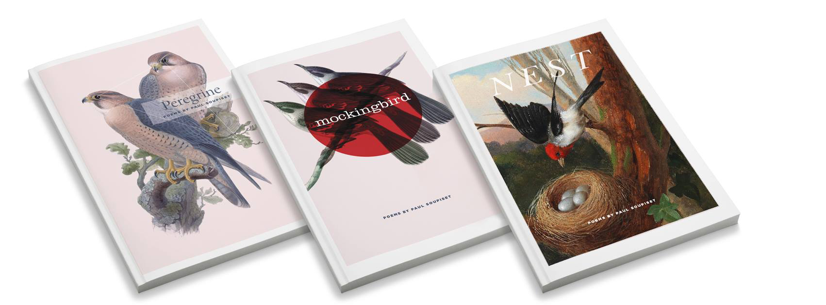 Peregrine, the first collection of poems from Paul R. Soupiset, alternates between intimate confessional and constructivist wordplay. Written during an intense and extremely prolific season, the author captured and refined a small body of work that explores the entry into life’s second half, a particular season described by Soupiset as “…full of transition, sadness, disappointment and misunderstanding”. Themes of beauty, love, faith, exile, forgiveness, fidelity, and vocation are explored, celebrated and brought into relief amidst the doubts and misgivings of midlife.[/vc_column_text][ult_buttons btn_title=”View on Amazon” btn_link=”url:http%3A%2F%2Fwww.amazon.com%2Fdp%2F1500982350|target:_blank” btn_title_color=”#ffffff” btn_bg_color=”#292a2d” icon_size=”32″ btn_icon_pos=”ubtn-sep-icon-at-left” btn_font_family=”font_family:Montserrat|font_call:Montserrat” btn_font_size=”desktop:13px;” btn_font_style=”font-weight:bold;”][vc_separator][vc_column_text]Mockingbird is the the second collection of constructivist wordplay poems from San Antonio poet Paul R. Soupiset. Available on Amazon and at local San Antonio independent bookstores, this volume continues Paul’s explorations begun in Peregrine: the entry into life’s second half, faith and doubt in and around a small liturgical community, sobering losses and gains, faltering prayers, crypto-confessional sketches, and pilgrimage-poems unfold over a nine-month writing period in 2014 and 2015.[/vc_column_text][ult_buttons btn_title=”View on Amazon” btn_link=”url:http%3A%2F%2Fwww.amazon.com%2Fdp%2F1512233897|target:_blank” btn_title_color=”#ffffff” btn_bg_color=”#292a2d” icon_size=”32″ btn_icon_pos=”ubtn-sep-icon-at-left” btn_font_family=”font_family:Montserrat|font_call:Montserrat” btn_font_size=”desktop:13px;” btn_font_style=”font-weight:bold;”][vc_separator][vc_column_text]Nest, the third collection of poems from Paul R. Soupiset, continues in the tradition of Peregrine and Mockingbird. Nest pulls deeply from themes of healing, hope, and redemption, while continuing to grapple with rear-view mirror ghosts, questions of privilege and justice, and enneagrammatic wanderings. Available on Amazon and at Twig Book Store in San Antonio.[/vc_column_text][ult_buttons btn_title=”View on Amazon” btn_link=”url:http%3A%2F%2Fwww.amazon.com%2Fdp%2F1548743844|target:_blank” btn_title_color=”#ffffff” btn_bg_color=”#292a2d” icon_size=”32″ btn_icon_pos=”ubtn-sep-icon-at-left” btn_font_family=”font_family:Montserrat|font_call:Montserrat” btn_font_size=”desktop:13px;” btn_font_style=”font-weight:bold;”][/vc_column][vc_column width=”1/6″][/vc_column][/vc_row]
